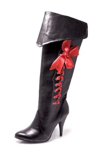What a cute pirate she could be! Pirate Boots with Ribbons consists of Knee high black boots with 4 inches heels and ribbon lace up look on the side. This woman Costume Accessory is available in shoe size 7, 8 & 9.