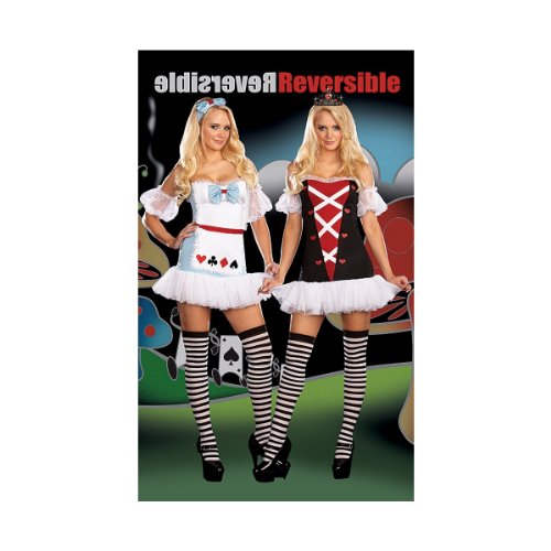 Cheap price Dreamgirl Women's Reversible Alice In Wonderland/ Queen Of Hearts Costume, Wht/Blk/Red, Medium
