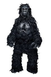 Long haired jumpsuit with latex chest and realistic gorilla mask. Polyester blend suit with velcro back closure. One size fits most adults. Includes latex chest, suit, mask,