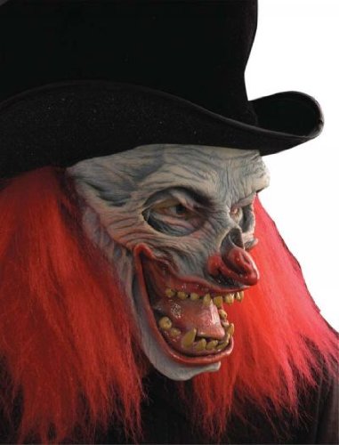 Skeletal look, laughing clown boy! Latex half mask, elastic band back with hat and hair attached.