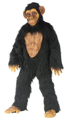 Deluxe child chimpanzee costume features full body suit with chest and full mask. Our child monkey suit makes the perfect gorilla costume for any youngster.