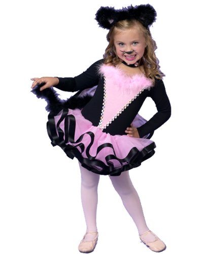 The Child Deluxe Kitty Ballerina Costume w/ headband is purr-fect for your little kitten. This girls' Halloween costume includes a black and pink tutu complete with a tail, pink marabou collar, and fuax fur head piece that looks like ears. It is available in X-Small, Small and Medium, so you can be sure it will look great and fit comfortably on your little ballerina. It is cute on its own or along with whiskers, black gloves, pink ballet slippers, white tights, makeup, wig or nail polish, sold separately on our website. Your daughter and her friends are sure to love the eye-catching, feline details of this creative yet adorable ensemble. Be sure to check out our 6 Inch Glow stick, easily found on our website, to keep your little girl safe while she's dancing around the neighborhood on Halloween night.