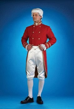 British Officer Adult Halloween Costume Size 46 Large includes: Jacket, breeches and vest. (NOTE: Wig, jabot, cuffs, and tights NOT included.)