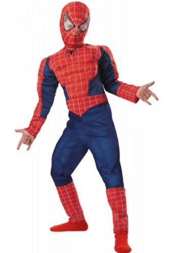 Spiderman Costume includes: blue and red jumpsuit with muscle torso, Grey webbing accents, and a matching character hood with mesh eye inserts. Please note: Socks NOT included. This Superhero Child Costume is available in Child Sizes Small (4-6), Medium (7-8), Large (10-12) and Pre-Teen (14-16).