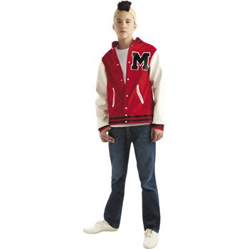 Punk Football Player Adult Men's Costume. Choose this fun polyester costume and be ready to trick-or-treat enter a costume contest or be the hit of the Halloween party! Wear this costume to a masquerade ball or as the perfect disguise at a haunted house. This outfit is sure to win you the best costume award at any Halloween costume party! Just supply your own jeans! IncludesLetter jacketPunk-style wigSpecial Shipping Information This item ships separately from other items in your order. Imported.